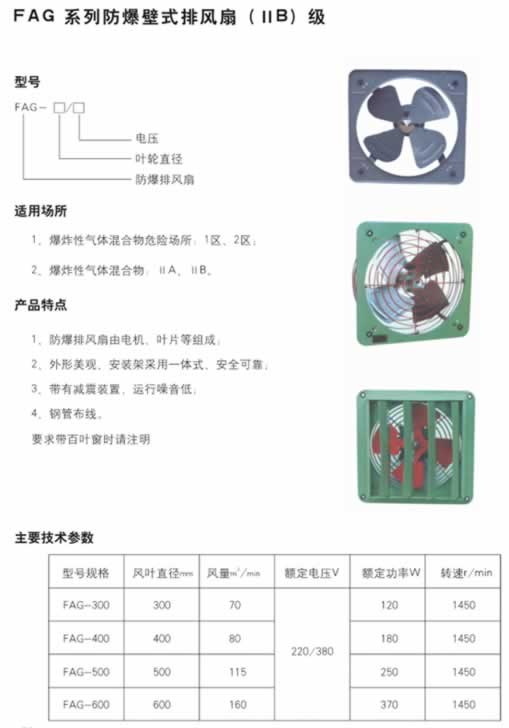 FAG系列防爆壁式排風(fēng)扇(ⅡB)級(jí)